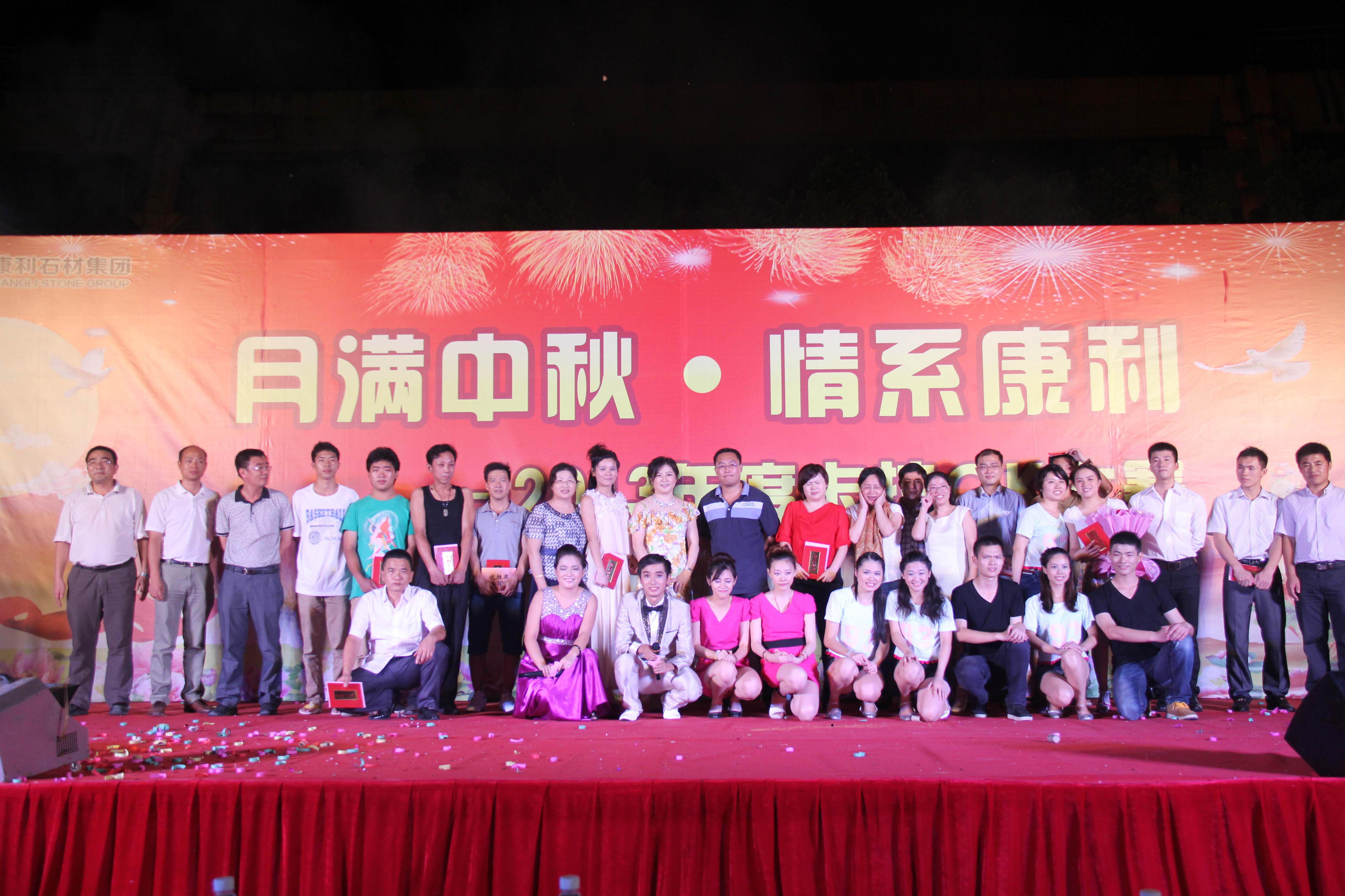 在《難忘今宵》的旋律下,公司領(lǐng)導(dǎo)為上臺(tái)的獲獎(jiǎng)選手進(jìn)行頒獎(jiǎng),并合影留念 “月滿康利情,歡歌同奮進(jìn)”中秋卡拉ok大獎(jiǎng)賽在觀眾們的意猶未盡中落下帷幕。