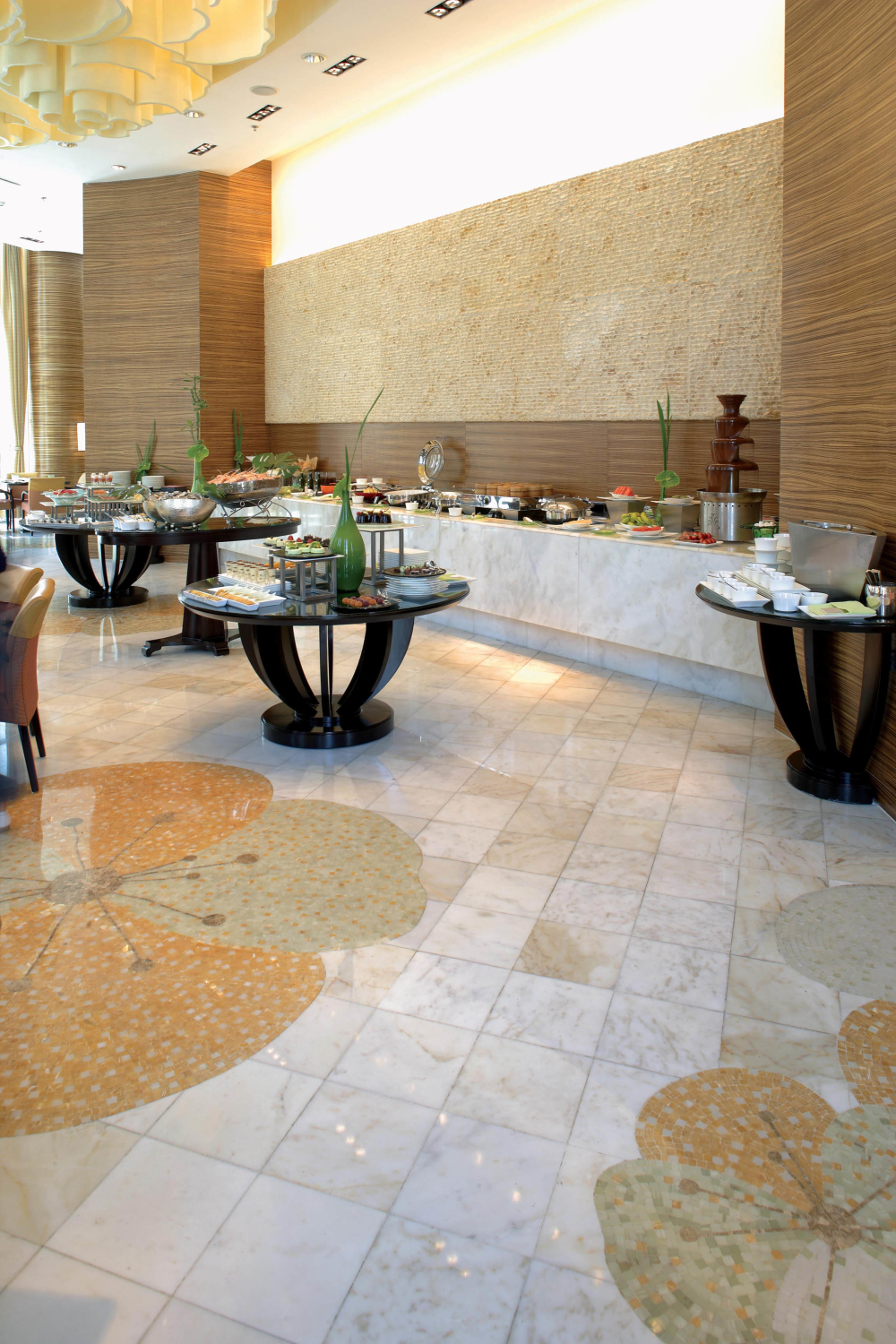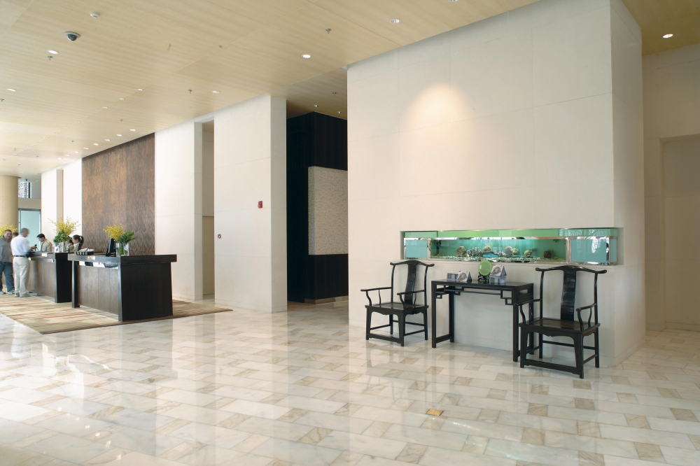 項(xiàng)目概述:北京麗思卡爾頓酒店位于朝陽區(qū)東四環(huán)CBD商業(yè)中心,由著名的萬豪國(guó)際管理集團(tuán)管理。為一五星酒店,2007年開業(yè),樓高16層。酒店內(nèi)部裝潢華貴高雅,質(zhì)感細(xì)膩的米黃玉石與色澤溫潤(rùn)的葡萄牙米黃,讓酒店內(nèi)部流動(dòng)著溫馨的氣息。大堂內(nèi)葡萄牙米黃石材柱子上雕刻特殊花紋,其加工精度、用料、及整體效果接近完美。地面由米黃、米白玉石鋪地,并獨(dú)具匠心的用各類玉石馬賽克拼花裝飾地面,色彩明麗,工藝精準(zhǔn),其效果之完美均得到業(yè)內(nèi)的廣泛贊譽(yù)。