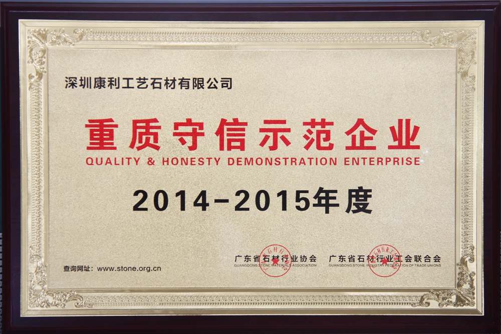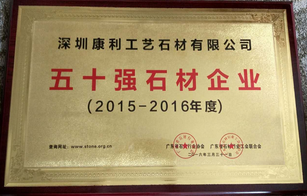 康利相繼獲得"廣東省名牌產(chǎn)品"、"廣東省著名商標"、"福建名牌產(chǎn)品"、"石材產(chǎn)品質(zhì)量信得過企業(yè)"、"中國石材十強企業(yè)"等,并繼續(xù)致力于成為中國石材行業(yè)第一品牌。