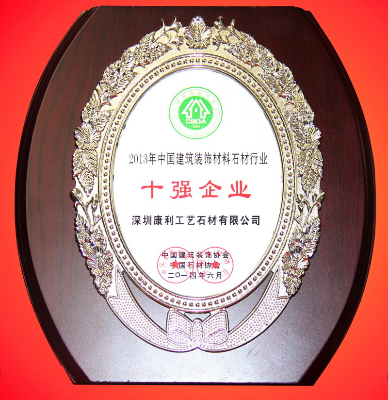 康利相繼獲得"廣東省名牌產(chǎn)品"、"廣東省著名商標(biāo)"、"福建名牌產(chǎn)品"、"石材產(chǎn)品質(zhì)量信得過企業(yè)"、"中國石材十強企業(yè)"等,并繼續(xù)致力于成為中國石材行業(yè)第一品牌。