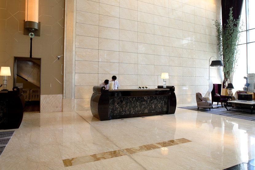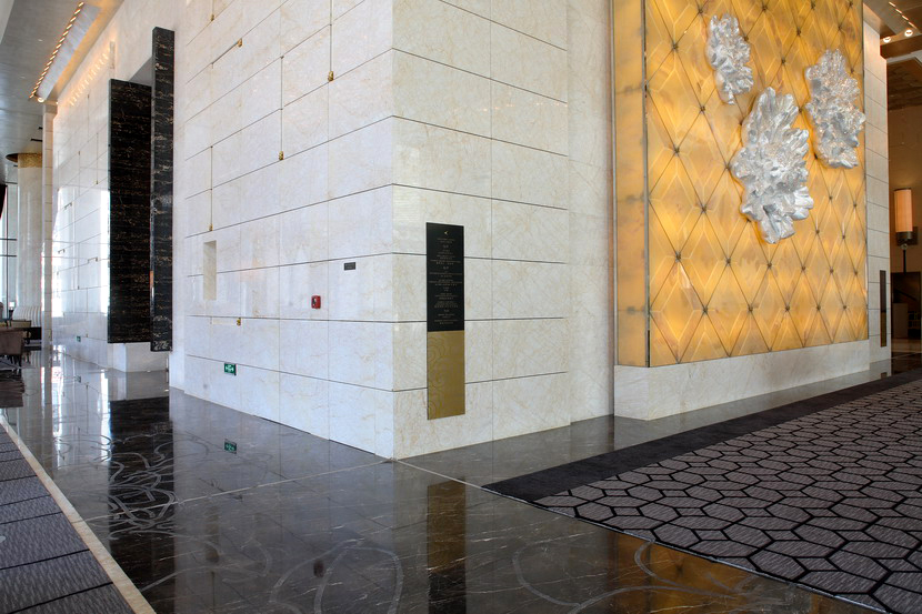 項(xiàng)目概述:北京萬達(dá)索菲特大酒店傲居備受矚目的商業(yè)領(lǐng)地CBD核心區(qū),以白金五星級(jí)標(biāo)準(zhǔn)打造。酒店延續(xù)索菲特酒店的法式風(fēng)情,結(jié)合極富北京地域特色的裝飾設(shè)計(jì),被第四屆中國酒店星光獎(jiǎng)評(píng)為“中國最佳頂級(jí)奢華酒店”。酒店內(nèi)部裝飾奢華、高雅,多種高端石材的精妙運(yùn)用,大大提升酒店的品位和檔次。其中,天然石材金蜘蛛和黑金花的完美搭配,堪稱室內(nèi)設(shè)計(jì)經(jīng)典之作!